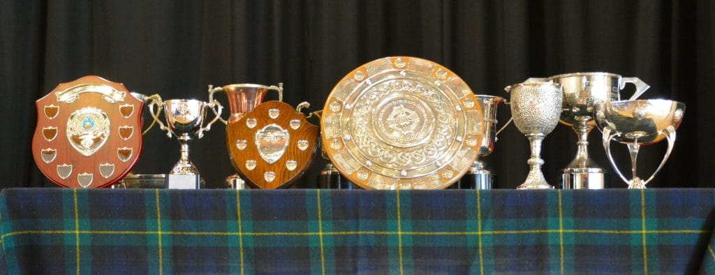Band contests: in each grade there are trophies for the winning band, the runner up and the best Corps of Drums. The premier prize is the Highland Shield for the best senior grade band.